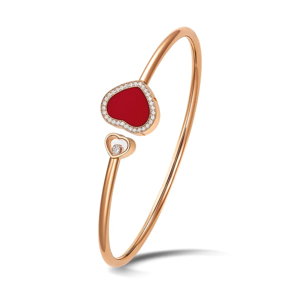 Die Armreife der Schmuckreihe Happy Hearts von Chopard verzaubern mit der wunderschönen ausdrucksstarken Form des Herzens. Dank ihres kostbaren Besatzes in bunten Farben sind sie fröhliche Begleiter, die jedem Look Glanz verleihen. Innerhalb weniger Jahre erlangte die Schmuckreihe Happy Hearts von Chopard ikonischen Status. Besetzt mit Herzen, die aus edelsten Materialien gefertigt werden, verzaubern die Designs Schmuckliebhaberinnen weltweit. Die Armreife lassen sich wunderbar zu eleganten wie sportlichen Outfits kombinieren.