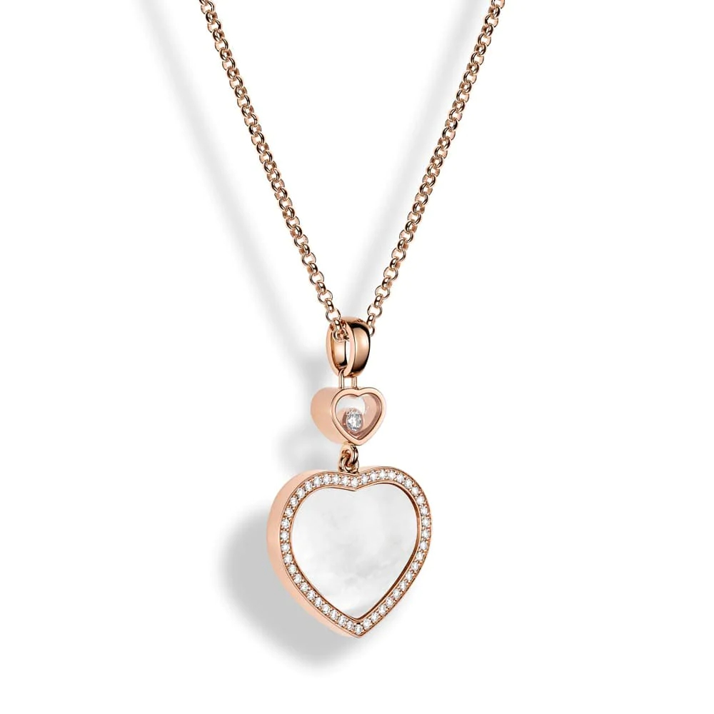 In den Armreifen vereinen sich zwei Markenzeichen der berühmten Schmuckmanufaktur aus Genf: das Talismanherz und der frei schwebende Diamant. Das Herz steht für die großherzigen Frauen, die sich für das Wohlergehen ihrer Liebsten engagieren. Der tanzende Diamant, der sich zwischen zwei Saphirgläsern frei bewegt, ist ein Symbol für Lebensfreude und einen freien Geist. Er symbolisiert Chopards Motto: „Little Diamonds Do Great Things“.