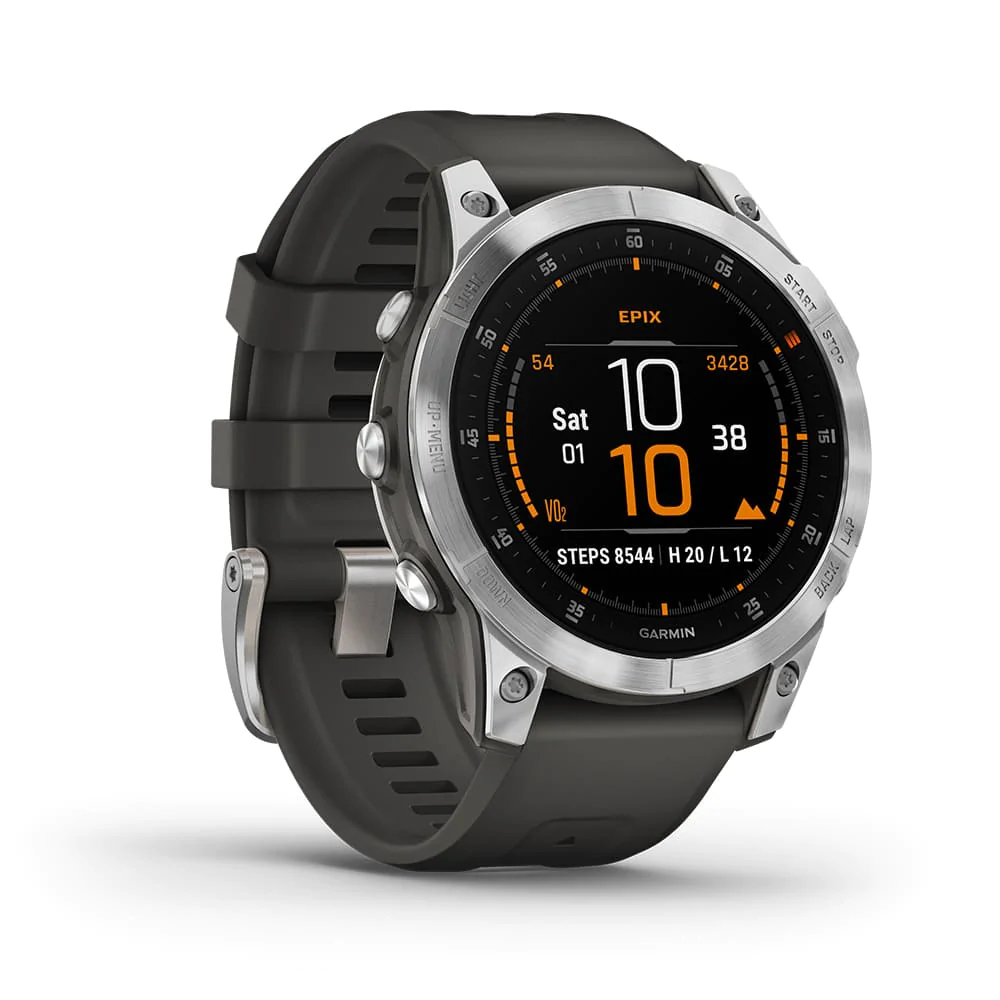Mit der Epix zeigt Garmin ein gänzlich neues Modell. Es verfügt über den gleichen Funktionsumfang wie die aktuellen Fenix-Modelle, bietet aber zusätzlich ein 1,3″ großes AMOLED-Display. Sein Always-On-Modus erweckt die Uhr sogar bei hellem Sonnenlicht zum Leben. Ein neuer Touchscreen ergänzt die Tastenbedienung. Die Akkulaufzeit beträgt bis zu 16 Tage im Smartwatch-Modus, die Modelle sind mit einer Lünette aus Titan oder einer Stahllünette erhältlich.