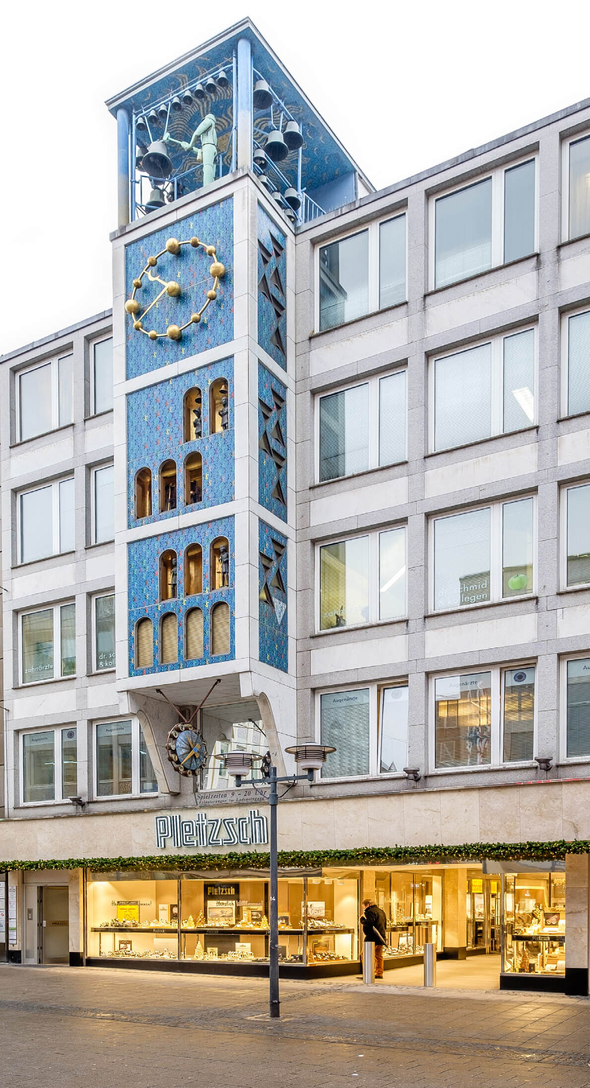 Die heimliche „Hauptstadt des Ruhrgebiets“ trumpft nicht nur mit ihrer imposanten Skyline im Südviertel auf: Die regionale Bedeutung der Stadt Essen und das berühmte Glockenspiel haben uns 2016 in die Kettwiger Straße 22 gelockt. Gestiftet 1928 von dem damals dort ansässigen Juwelier Josef Deiter, schlägt in dem beeindruckenden Turm bis heute Bergmann Anton jede volle Stunde seinen Hammer zu regionalen Volksliedern gegen die Glocke. Bei der Übernahme des Geschäfts haben wir die 26 Bronzeglocken und die Figuren der Essener Stadtgeschichte überholen lassen. Nicht nur für Kinder ist das Spektakel immer wieder ein Erlebnis! Schauen Sie doch einmal persönlich bei uns vorbei – im eleganten Ambiente zu Füßen von Anton präsentieren wir Ihnen eine exklusive Auswahl beeindruckender Uhrenmarken und aufregender Schmuckmanufakturen. Wir freuen uns auf Ihren Besuch!