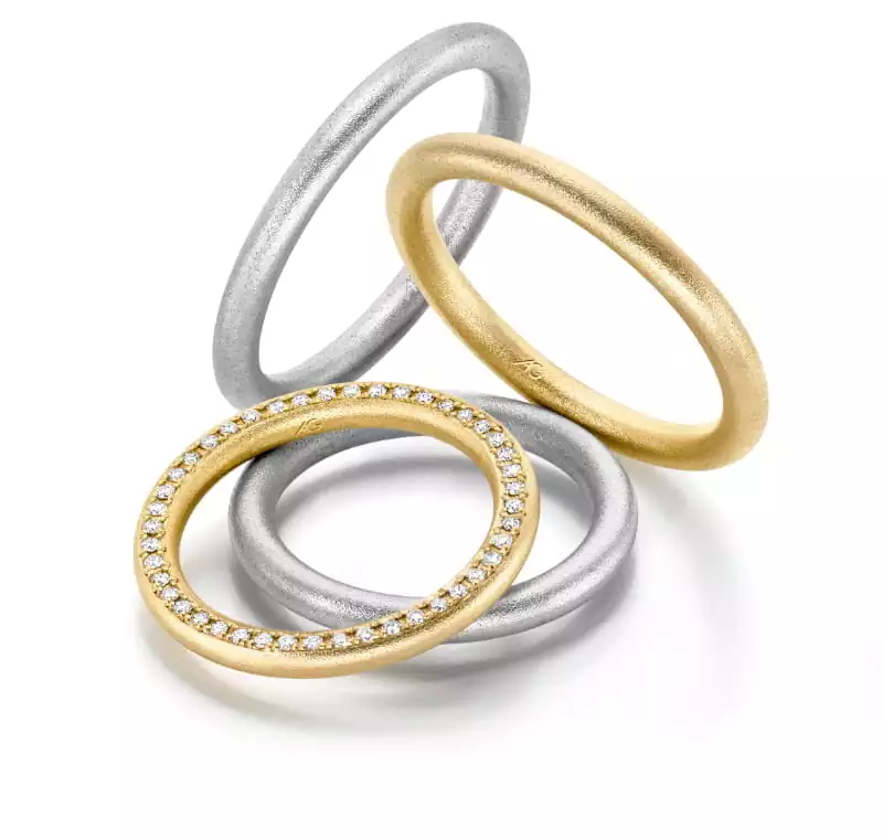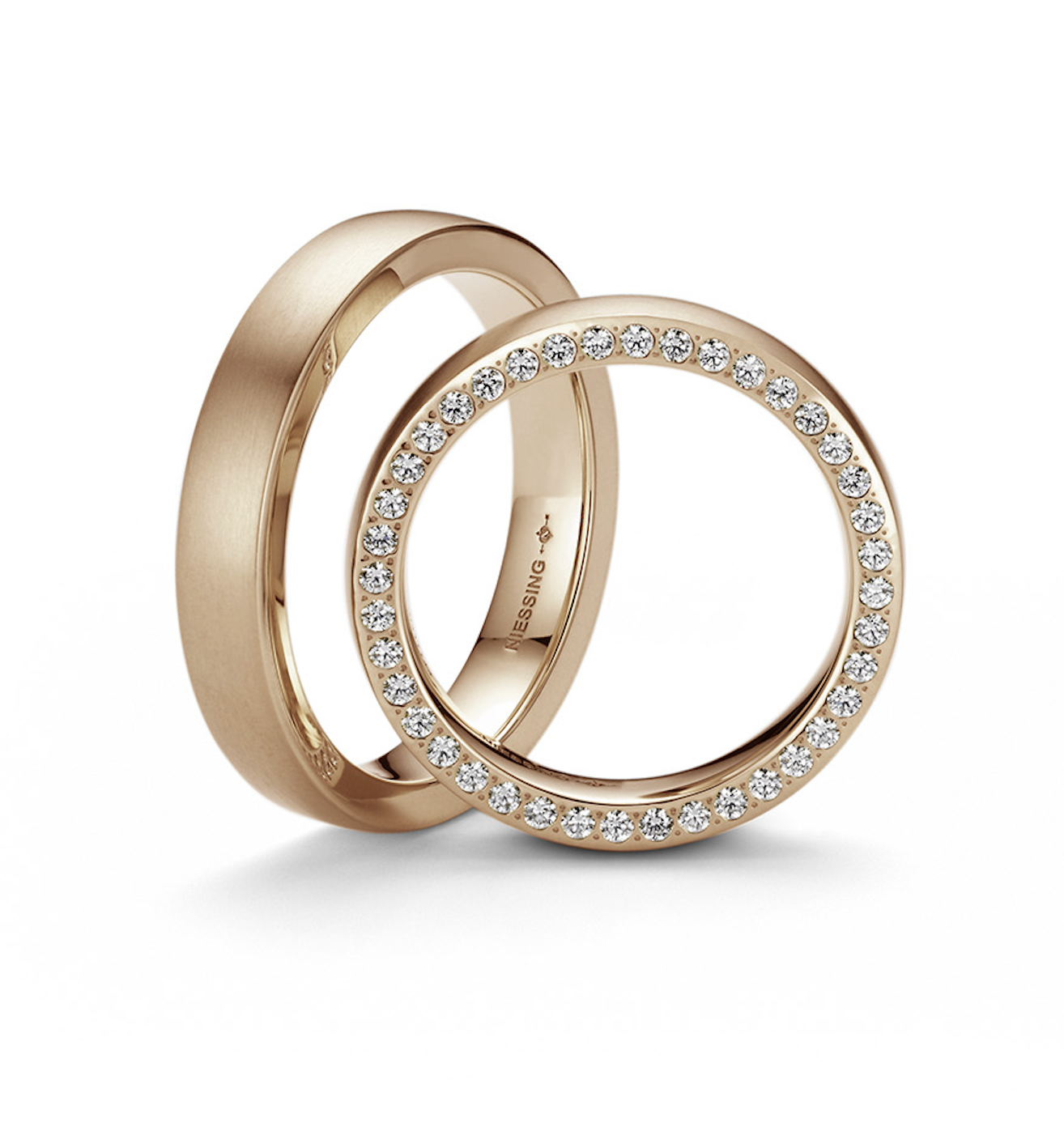 Ob Gelb-, Weiß- oder romantisches Roségold - unsere Trauringe sind in zahlreichen Legierungen und Kombinationen erhältlich. So entsteht genau das Ringpaar, das zu Ihrer Liebe passt. Dabei setzen wir auch auf nachhaltige Werte: unsere Ringe entstehen aus recyceltem Gold und werden mit konfliktfreien Diamanten besetzt - gefertigt von renommierten deutschen Manufakturen, die für höchste Qualität und verantwortungsvolles Handwerk stehen.